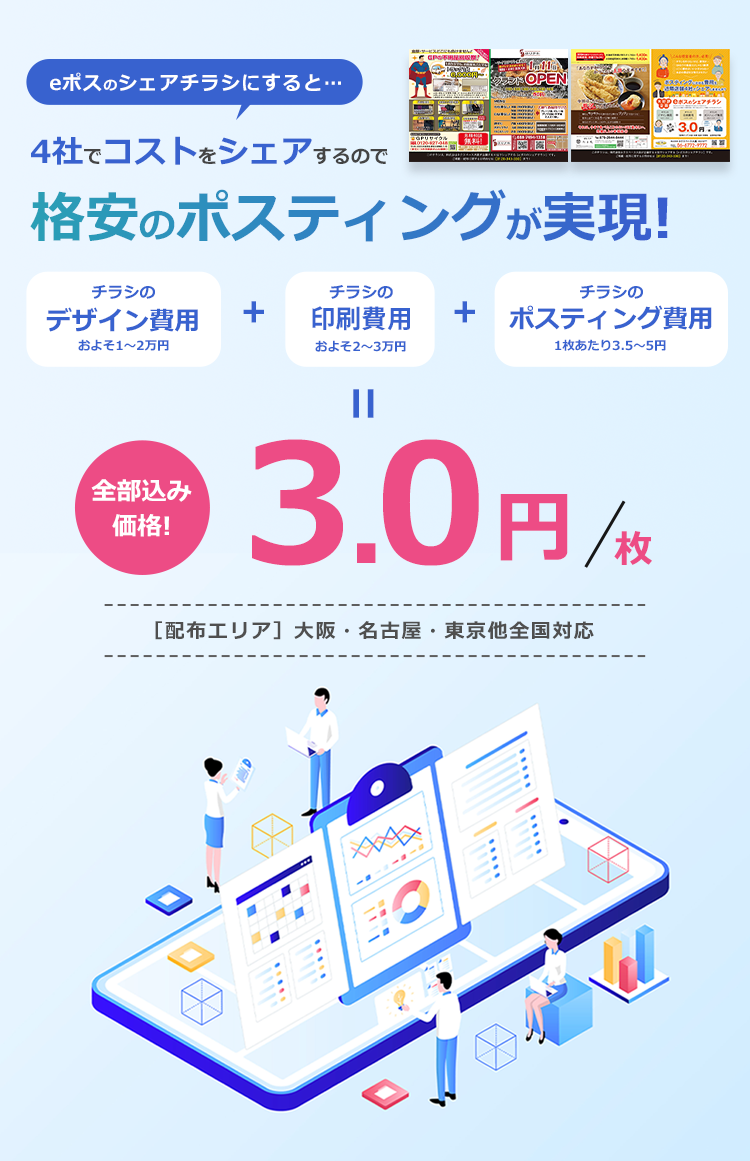 掲載店様もチラシのシェアだけじゃなく、ポスティング費用までもシェアできる
